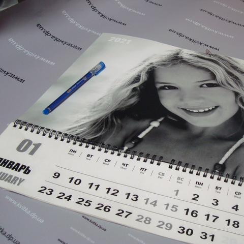 Формат А3 горизонтальний відривний, з відривними листами на пружині. Підвіска на люверсі. Відривні блоки - 12 чорно-білих, односторонніх листів.