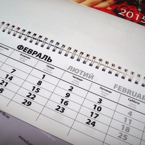 Формат А3 вертикальний відривний, з відривними листами на пружині. Підвіска на люверсі Відривні блоки – чорно-білі, односторонні.