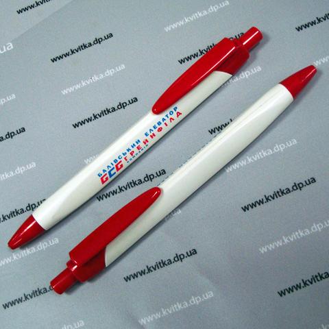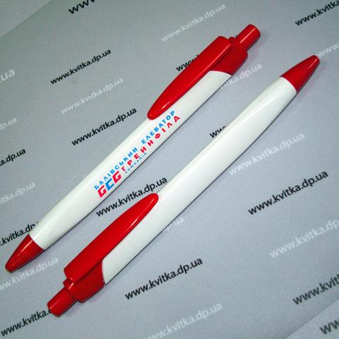 Ручки з друком логотипа в два кольори, ціна за комплект 100 шт. Щоб замовити, виберіть кількість комплектів.