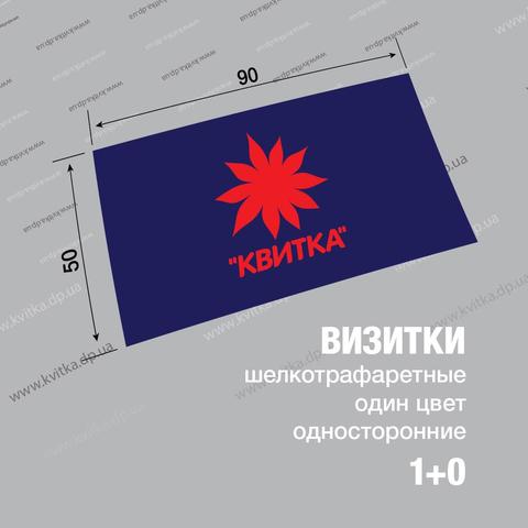 Візитки шовкотрафарет, один колір, з одного боку 1+0 – ціна за комплект 100 шт. Щоб замовити, виберіть кількість комплектів.